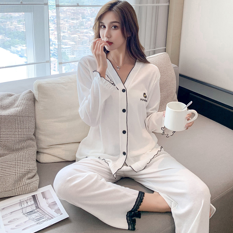 Pajamas women's 2021 new ins net red fashion trend spring and autumn pure cotton long-sleeved home suit Korean suit