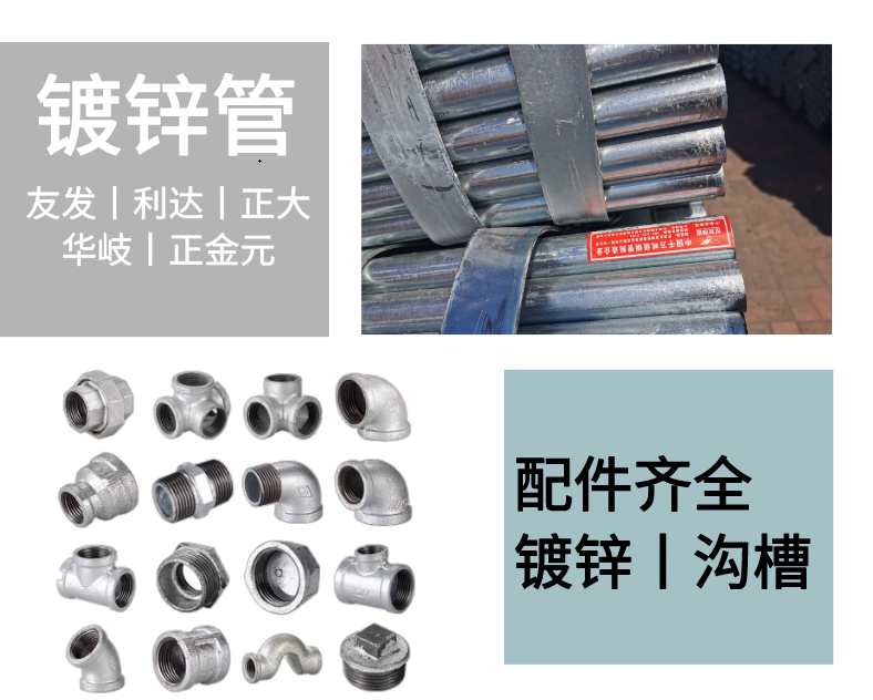 You heat galvanized pipe Huaqi galvanized pipe Engineering pipe Valve elbow three-way fire pipe Galvanized greenhouse pipe