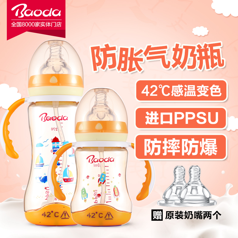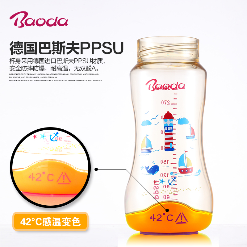 Baode PPSU bottle big baby anti-flatulence anti-vomiting resistant straw cup 9 months 300ML with gravity ball handle