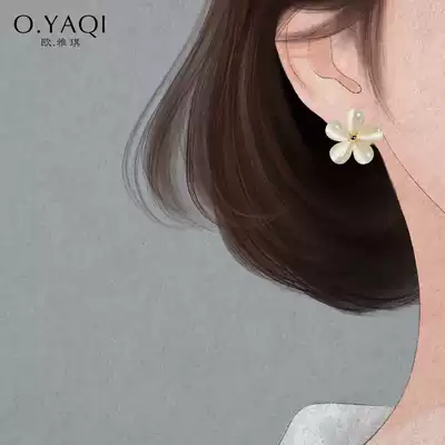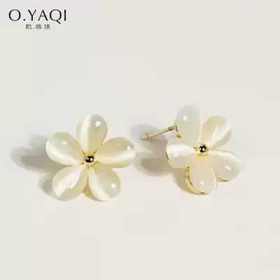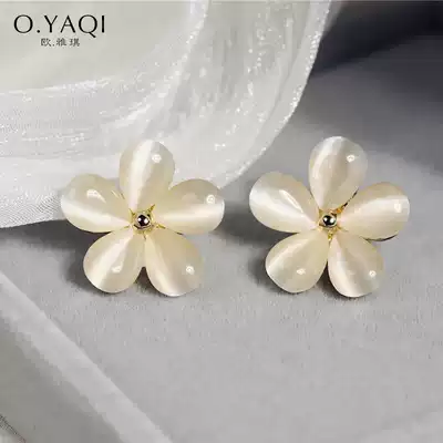 Cat's eye stone five petal flower Flower Flower no ear hole mosquito coil ear clip 925 silver needle hipster ear needle female ear ornaments