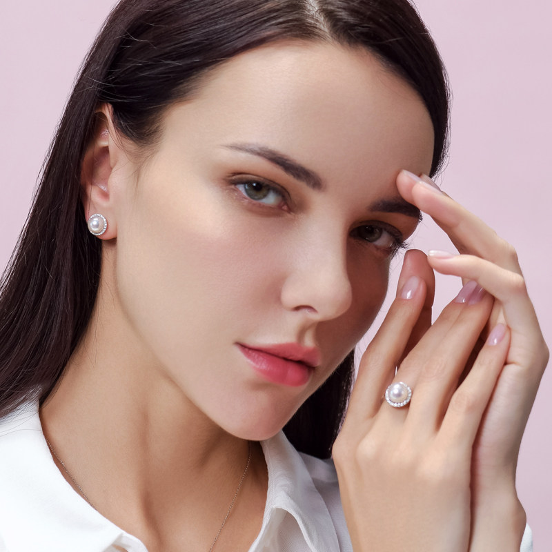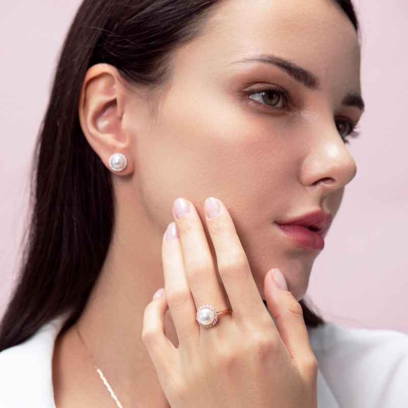 Gio Jewelry Japan Akoya Seawater Pearl Ring 18K Rose Gold Full Drill With Timeless Series Pearl Jewellery