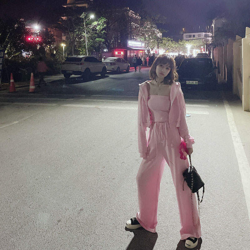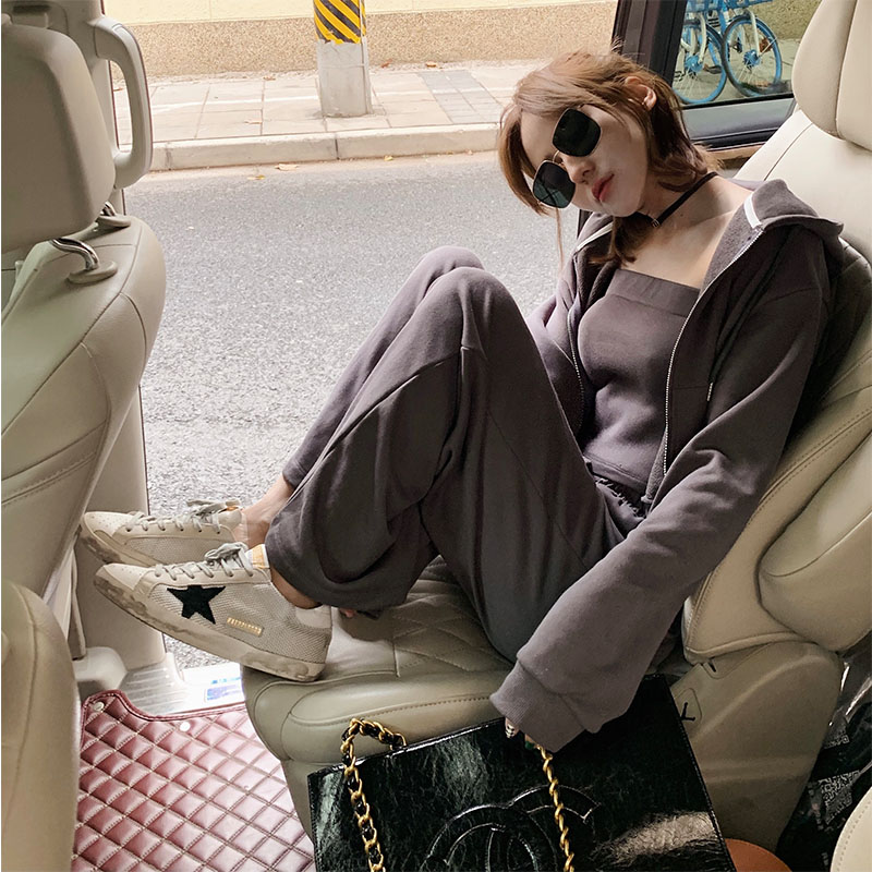 Leisure sports suit 2021 early spring new women's Western style age-reducing net red temperament fashion fried street sweater three-piece set