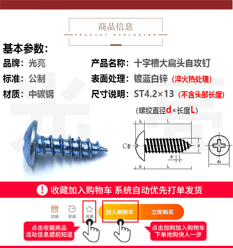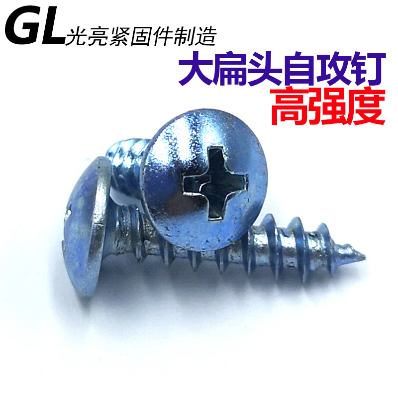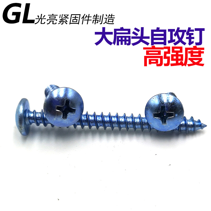 Shanghai plus hard plated blue zinc cross groove large flat head wood screw self-tapping screw high strength semi-round head umbrella head nail