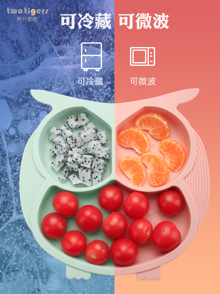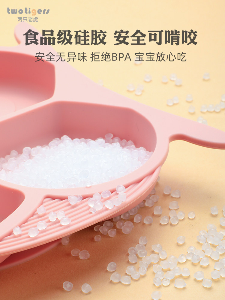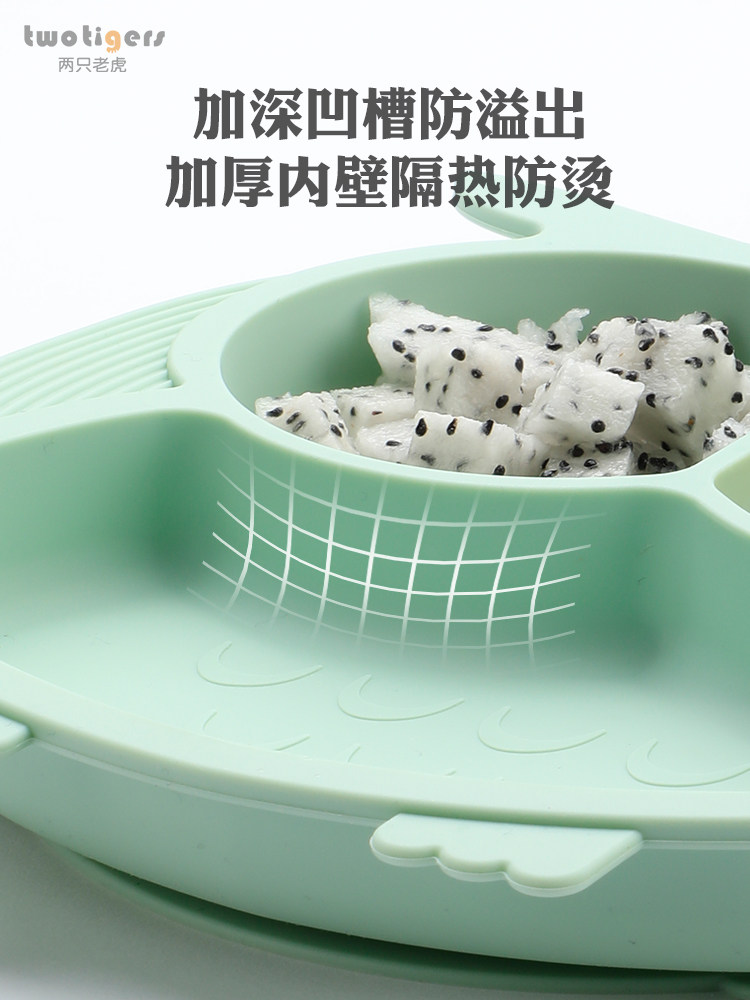 Baby dinner plate children's silicone suction cup bowl divided grid anti-fall cartoon tableware baby learn to eat complementary food bowl spoon set