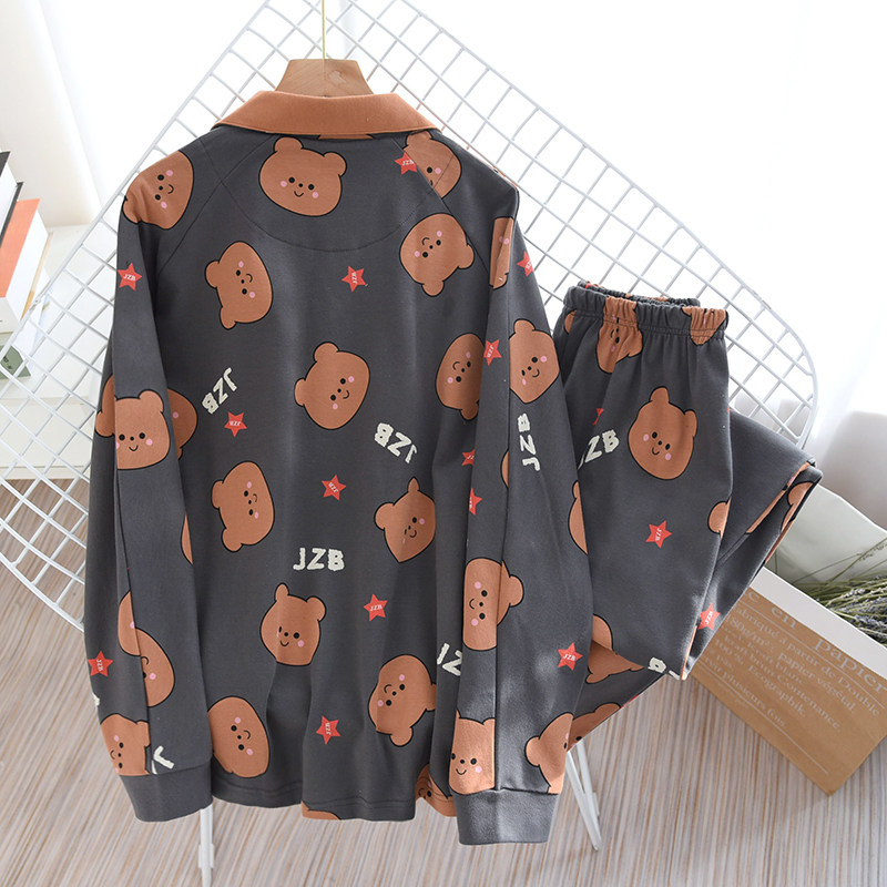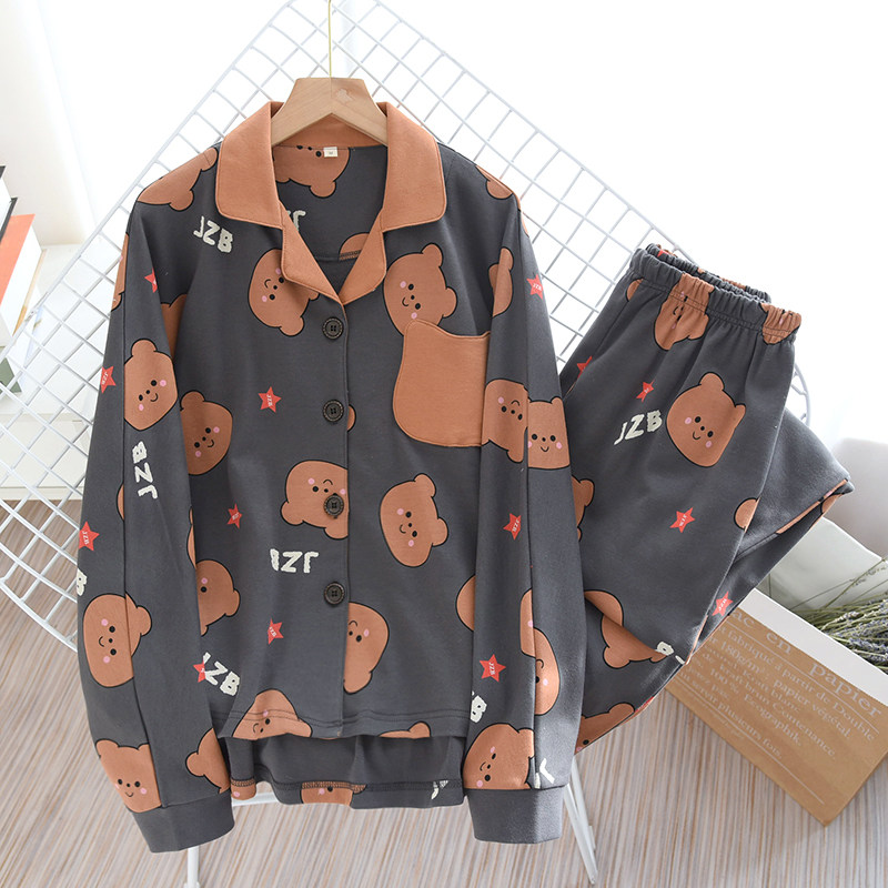 Full Cotton Pyjamas Woman Spring Autumn Cartoon Cotton Wool Pure Cotton Couple Men's Home Conserved Long Sleeve Loose size Sizes Home Suit Jacket
