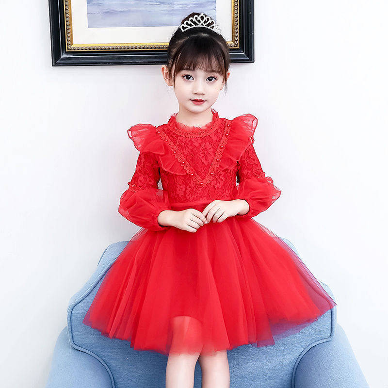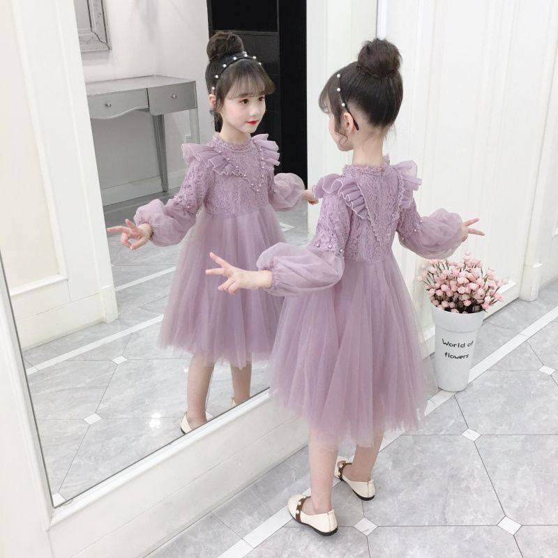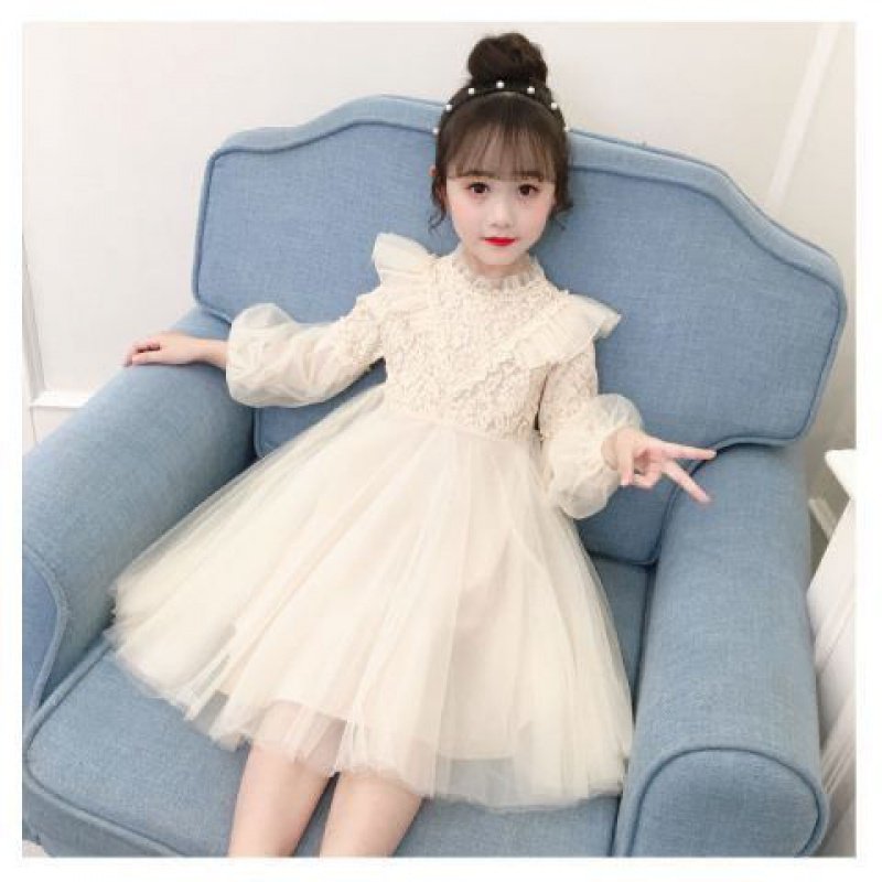 Girls Fall/Winter Dress 2021 New Little Girl Fairy Gauze Skirt Foreign Long Sleeves Kids Princess Skirt