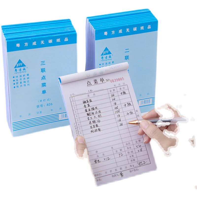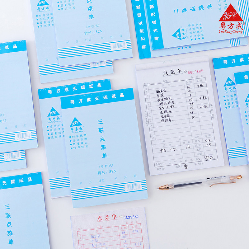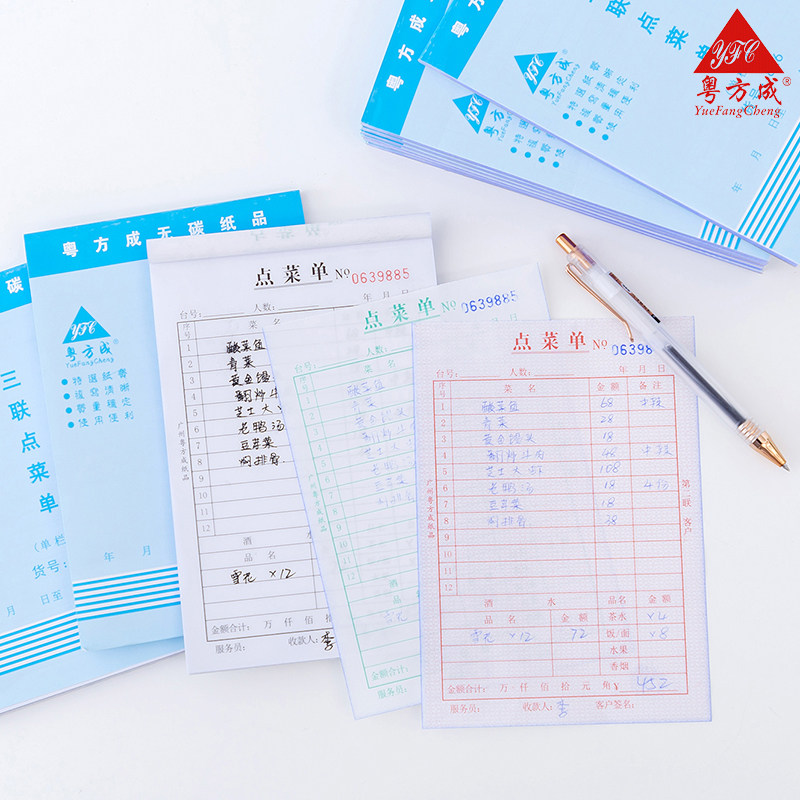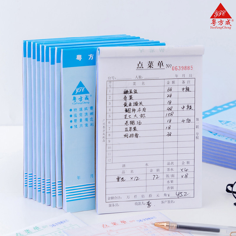 Yuefangcheng 32K A la carte menu vertical big Ben hotel wine and tea water one-handed write carbonless copy 2-in-3 barbecue write