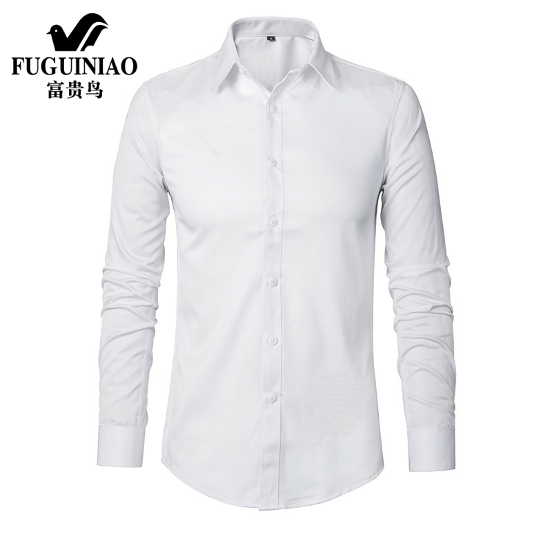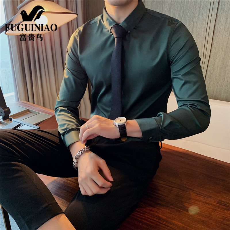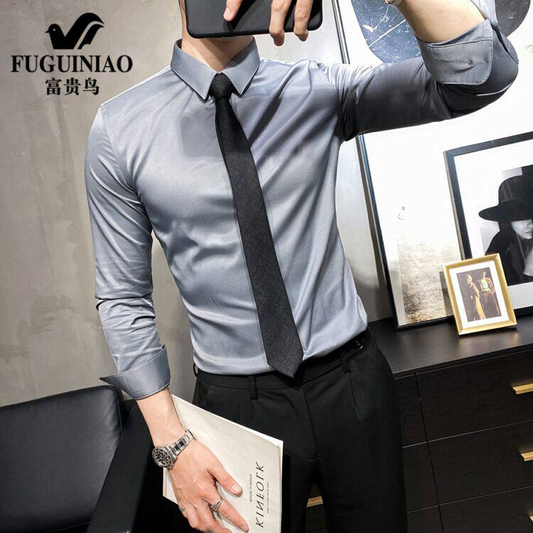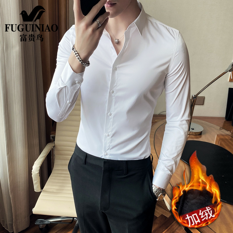 Rich and expensive bird long sleeve shirt male Korean version suit Neapping undershirt undershirt business men's shirt pure white handsome