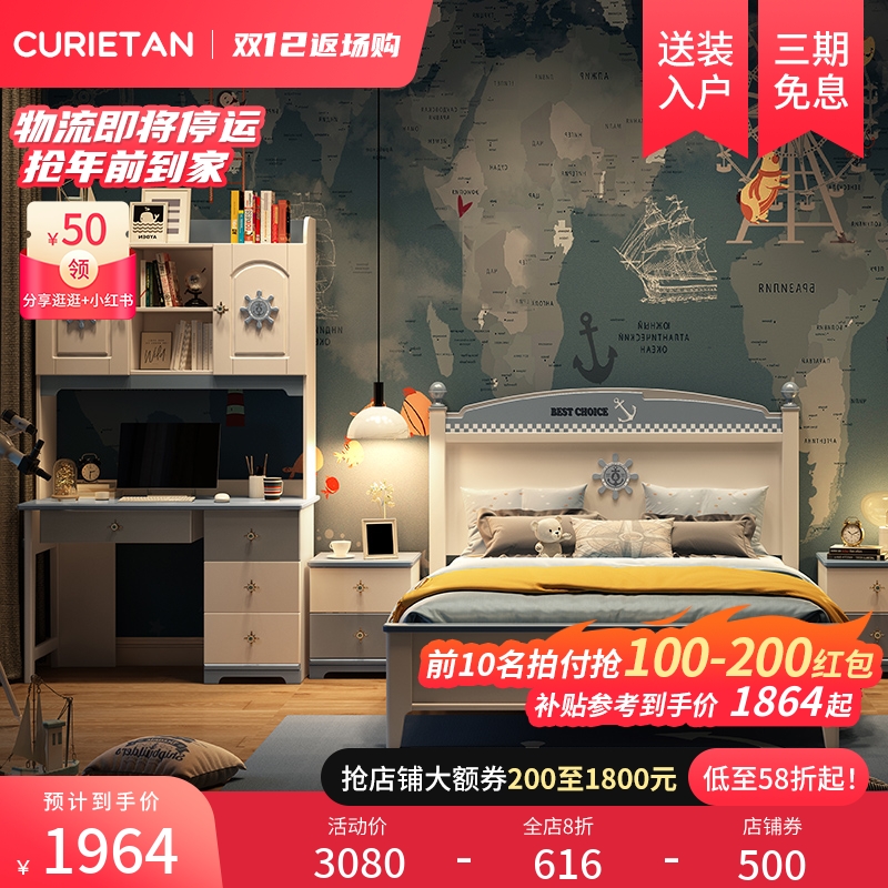 Children's desk bookcase combination bedroom boy multifunctional study table junior high school students home solid wood corner desk