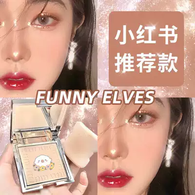 funnyelves powder cake oil control makeup powder lasting nuoo concealer clear version dry skin dry wet fe photosensitive powder