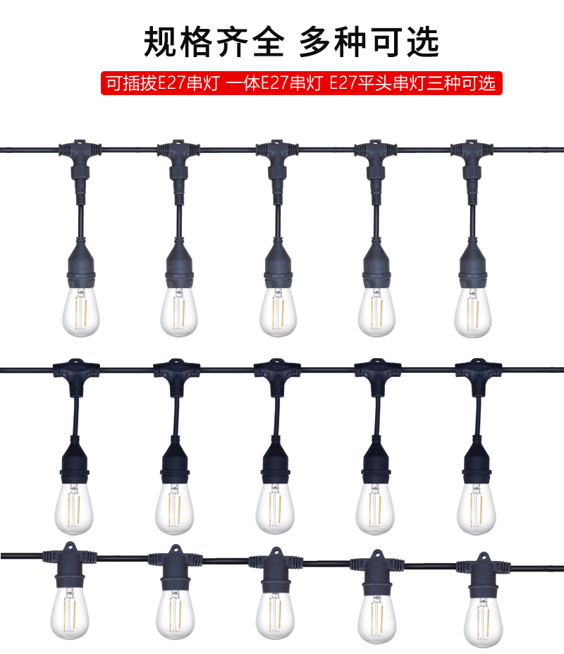 2 watt LED 10 only 24 watt tungsten filament lamp 10 pieces integrated power cord 1 meter with female head Integrated power cord 2 meters with mother Head Integrated power cord 3 meters with mother Head Integrated power cord 5 meters with mother head Integrated three-way lamp head 5 lamp head gap 0.5 meters Can be stringed Integrated three-way lamp head 5 lamp head gap 1 meter Can be stringed Integrated three-way lamp head Gap 1.5 meters Can be stringed One three-way lamp head 5 lamp head gap 2 meters Can be stringed One three-way lamp head 5 lamp head gap 2.5 meters Can be stringed One three-way lamp head 5 lamp head gap 2.5 meters Can be stringed One three-way lamp head 5 lamp head gap 3 meters Can be stringed Split three-way lamp head 5 lamp head gap 0.5 meters Stringable Split three-way lamp head 5 lamp head gap 1 meter Can be string Split three-way lamp head gap 1.5 meters Can be stringed Split three-way lamp head 5 lamp head gap 2 meters Can be string Split three-way lamp head 5 lamp head gap 2.5 meters Can be string Split three-way lamp head 5 lamp head gap 3 meters Can be stringEd flat lamp head 5 lamp head gap 0.5 meters Can be stringEd flat lamp head 5 lamp head gap 1 meter Can be stringed Flat head 5 lamp head gap 1.5 meters Can be stringed Flat line lamp head 5 lamp head gap 2 meters Can be stringed Flat line lamp head 5 lamp head gap 2.5 meters Can be stringed Flat line lamp head 5 lamp head clearance 3 meters can be customized