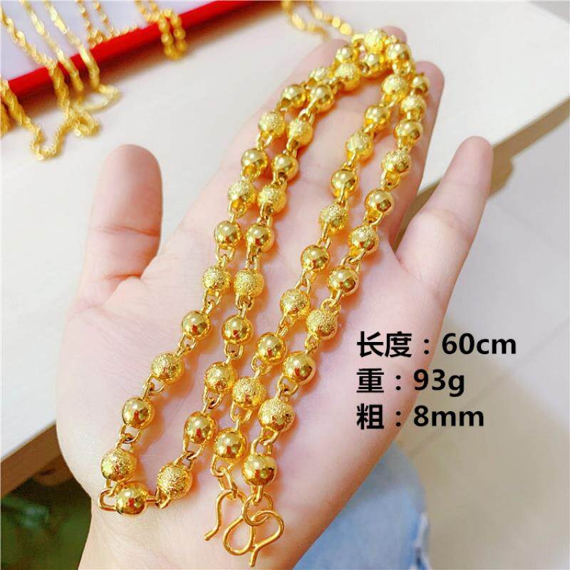 Zhou Dafu Huanmei 999 Gold Necklace Men Solid Glossy Round Pearl Chain Couple 18K Gold Necklace 16K True Gold