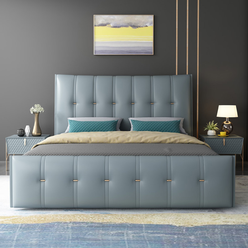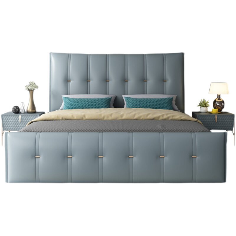 Italian minimalist leather bed leather bed Nordic light luxury soft bed modern minimalist double bed small apartment storage wedding bed