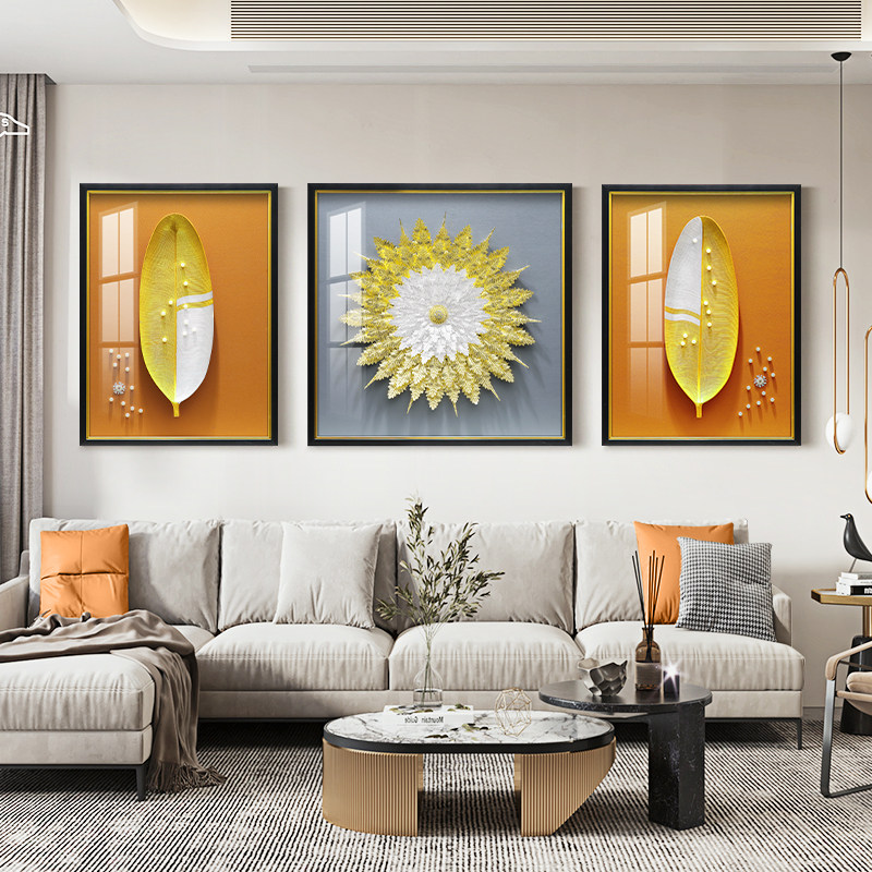 Modern light luxury living room decoration painter big industry big three-dimensional physical painting sofa background wall hanging painting triple mural