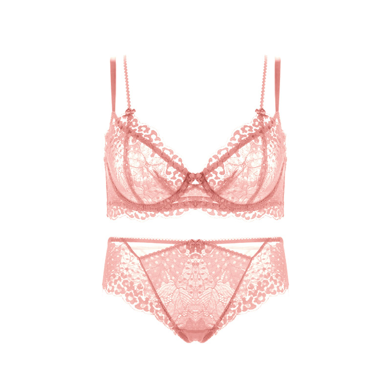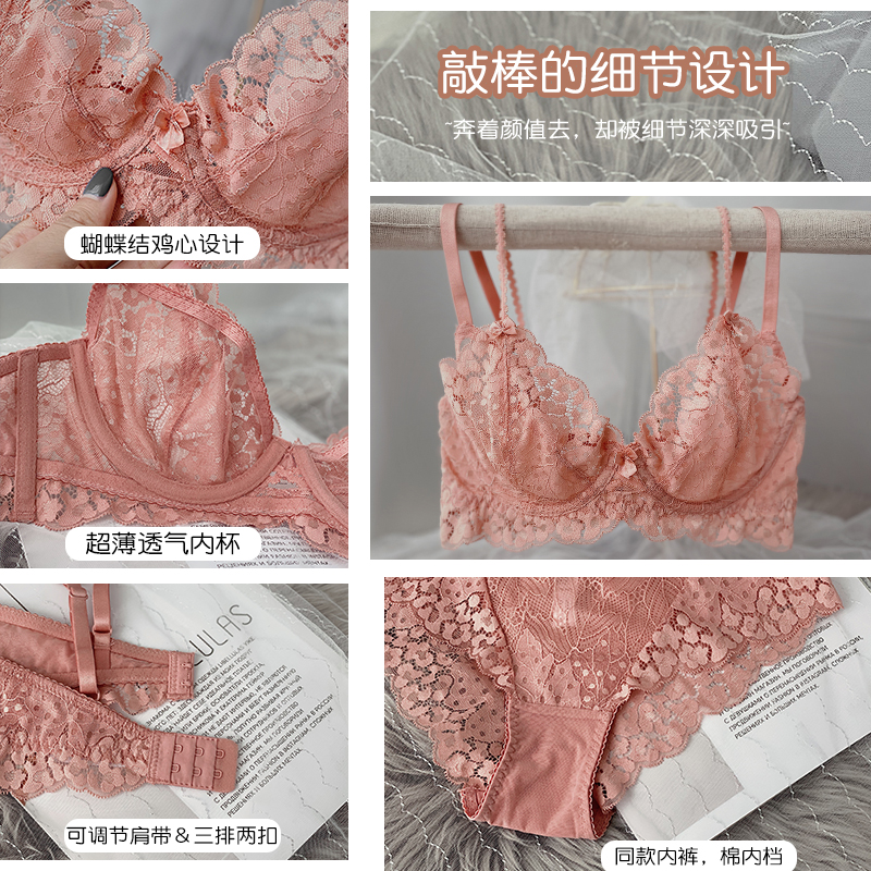 French ultra-thin underwear women's summer thin comfortable big chest show small anti-sagging bra Sexy lace small cute suit