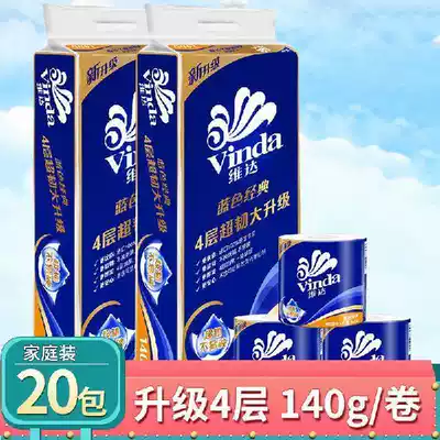 Vader roll toilet paper 200g blue classic 4-layer powder room toilet paper towel household FCL affordable pack 2000g20 rolls