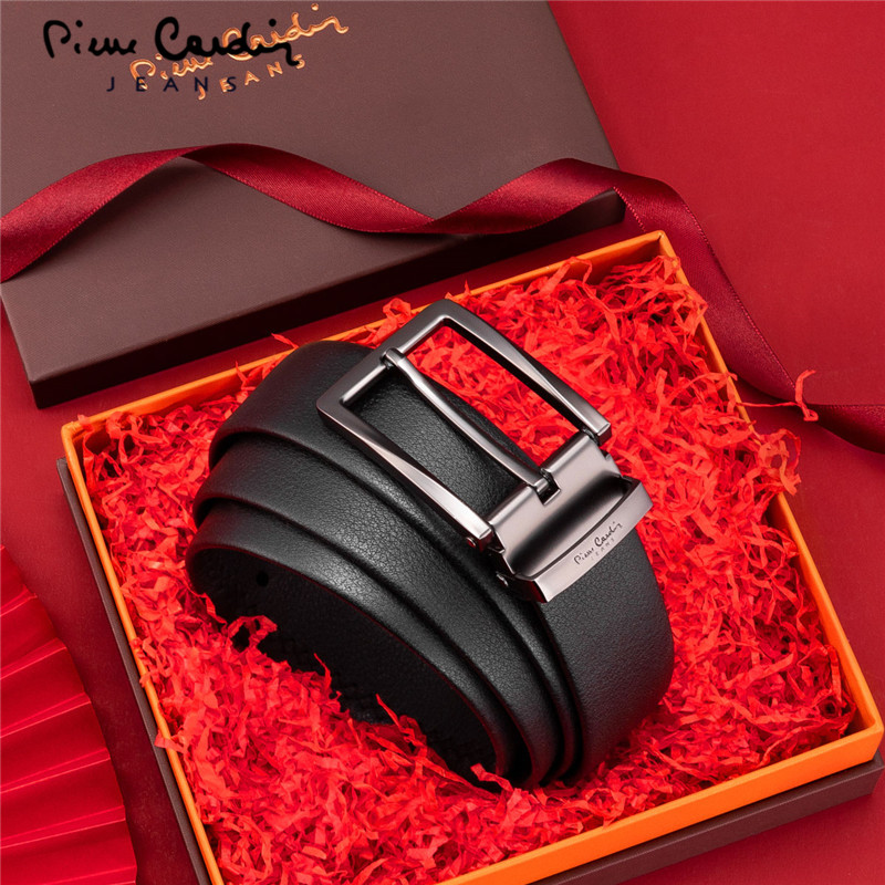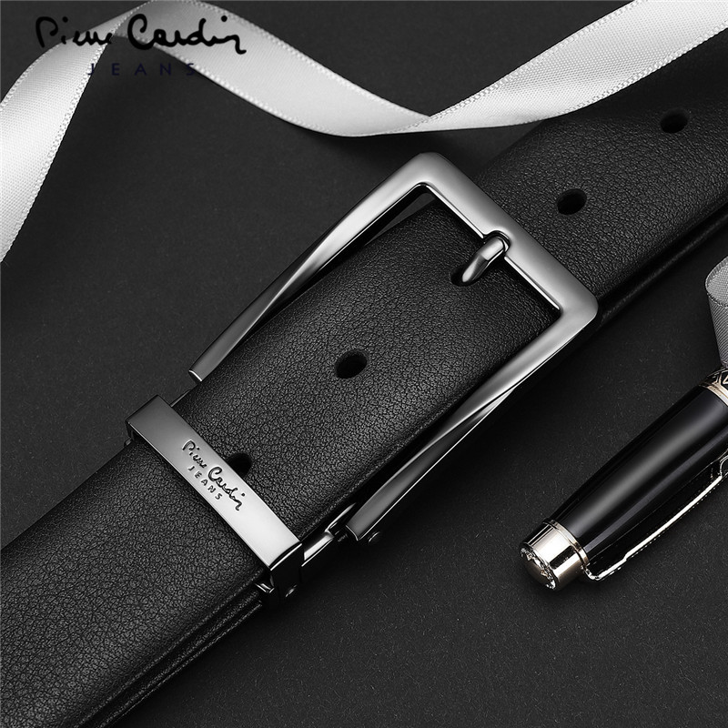 Pierre Cardin pin buckle belt men's top layer cowhide business men's leather belt young people casual simple belt