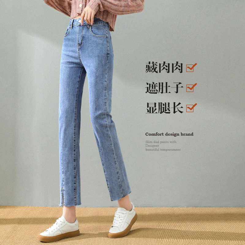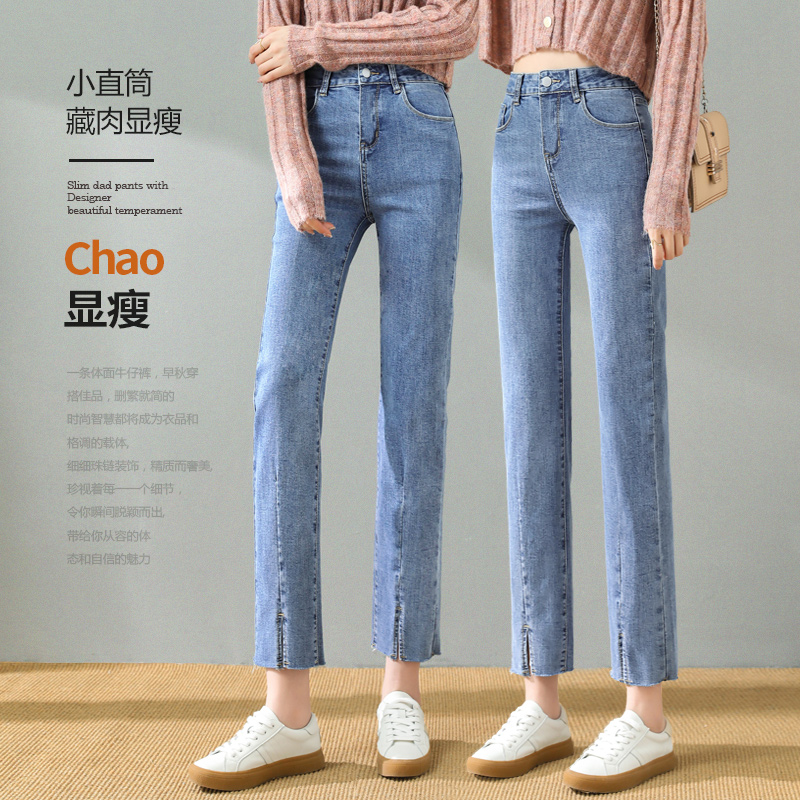 Open Fork Jeans Female Straight Tube 2022 Summer New High Waist Display Slim Loose 90% Small Subsmoke Tubes Pants Tide