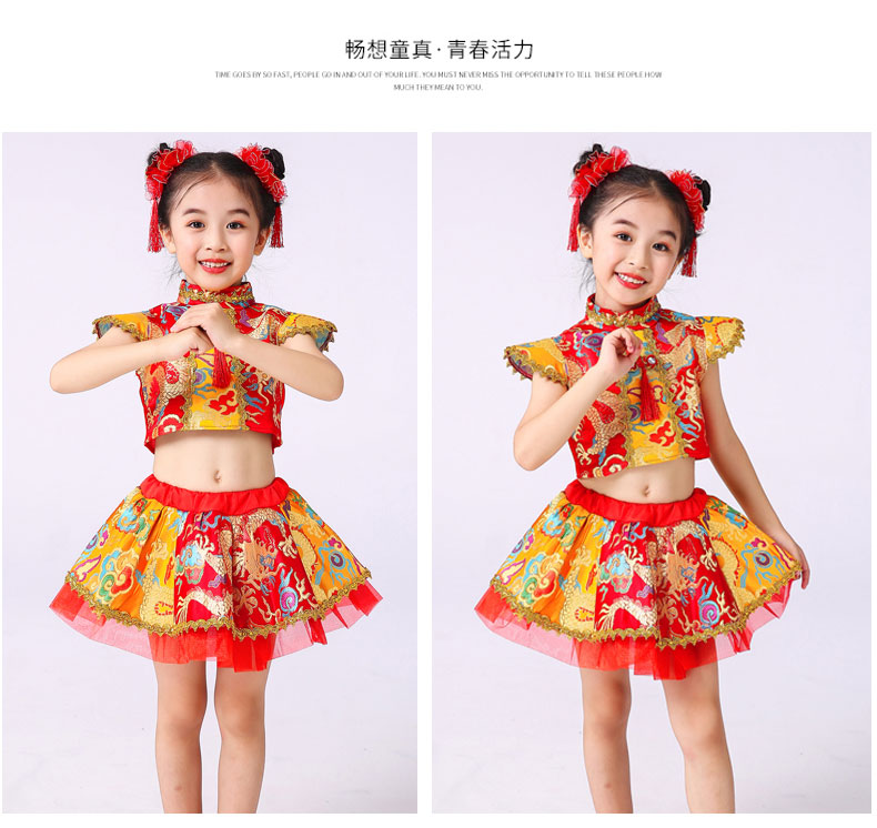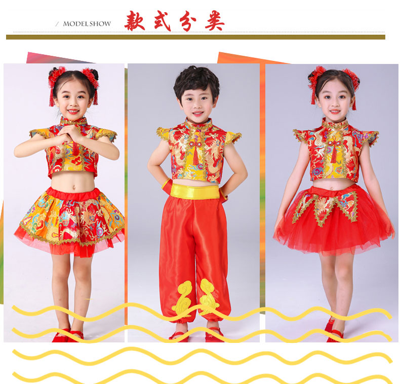 Children's opener, festive Yangko clothing, boys and girls, Chinese style drumming clothing, rap and singing Chinese red dance performance clothing