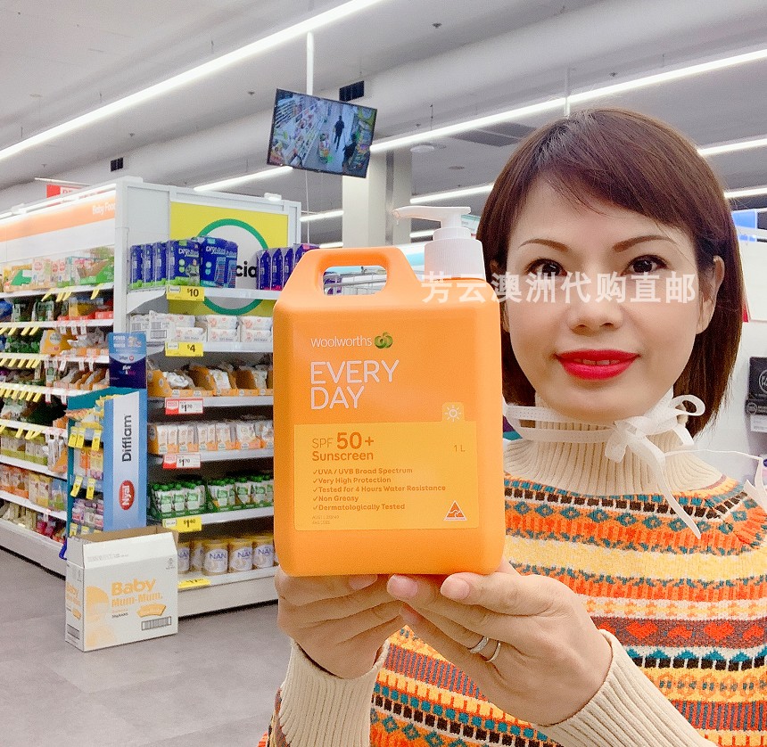 Australia direct mail woolworth sunscreen sunscreen black waterproof anti-sweat SPF50 outdoor large bottle family pack 1L