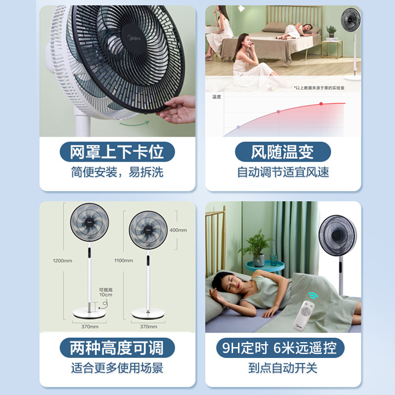 Midea electric fan floor fan home vertical static remote control living room sound strong wind powerful energy-saving dormitory bedroom electric fan