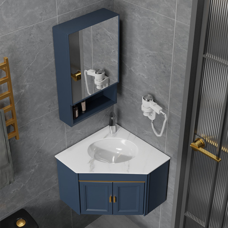 Small apartment waterproof washstand Wash wash basin bathroom cabinet combination Triangle corner wall corner hanging cabinet