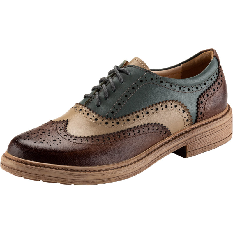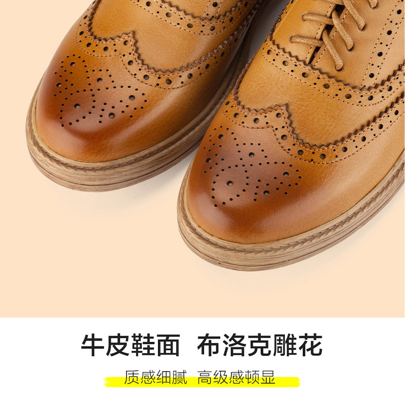 Deona 2022 comfortable British style leather lace-up mid-heel bag shoes women's literary retro brown soft-soled small leather shoes