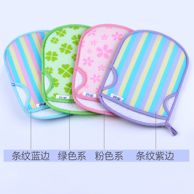 Miaojie rubbing gloves large thickened rubbing back rubbing mud artifact double-sided printing double-effect strip color rubbing towel