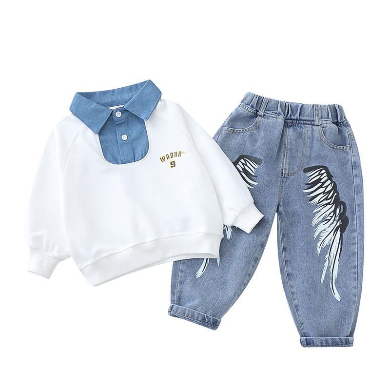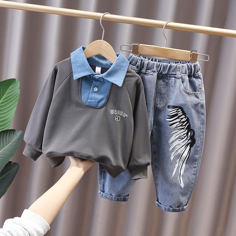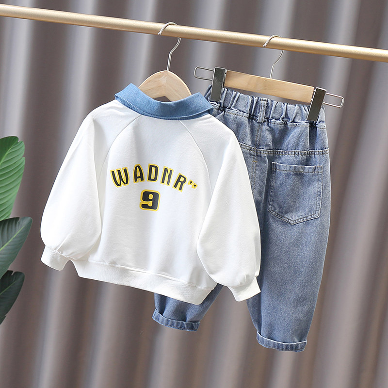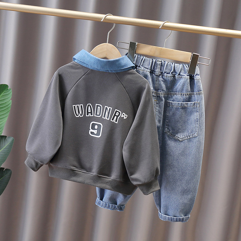Boy Clothing Boy Autumn Clothing Suit 2022 Children Handsome Spring Autumn Boy Clothes Children Foreign Pie Tide Cards Two Sets
