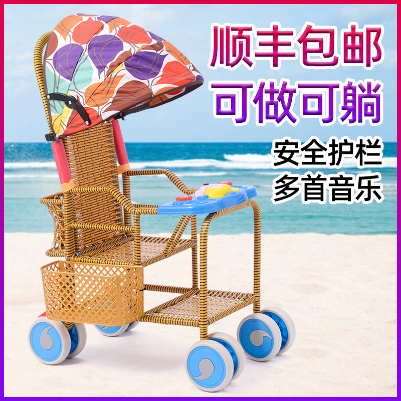 Baby stroller bamboo rattan light table Bamboo choreography Imitation Vine choreography Baby Child summer rattan chair trolley