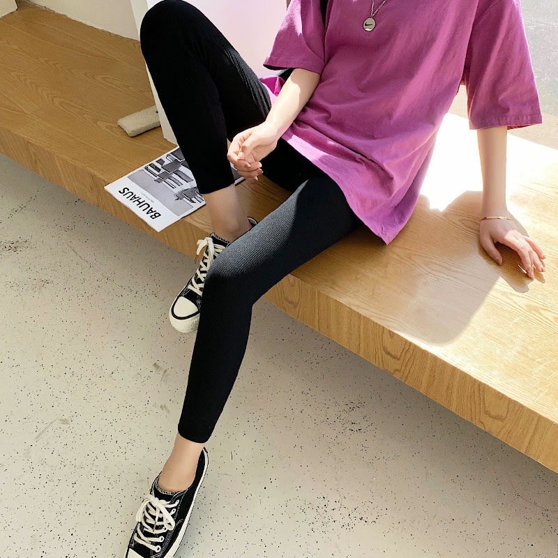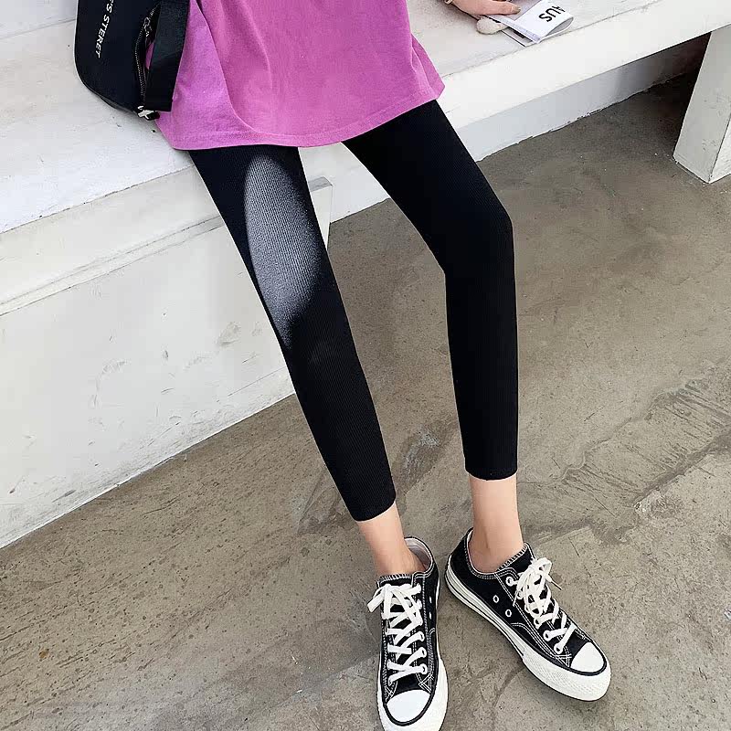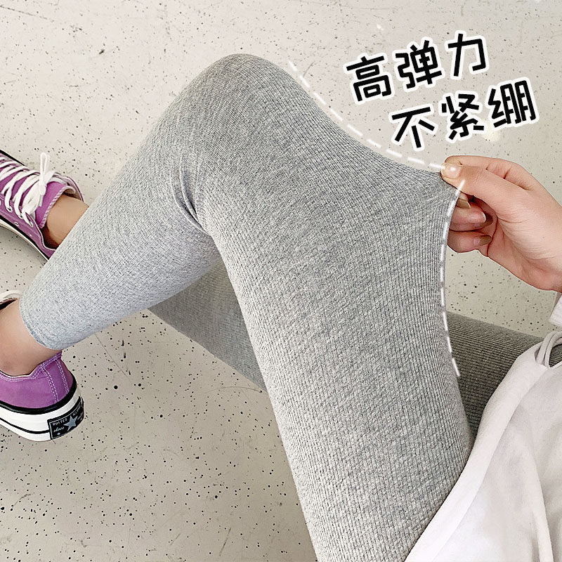 (Broken Code) Clearance Solid Color Threaded Cotton Stretch Pants Women's Spring and Autumn Pants High Waist Tights