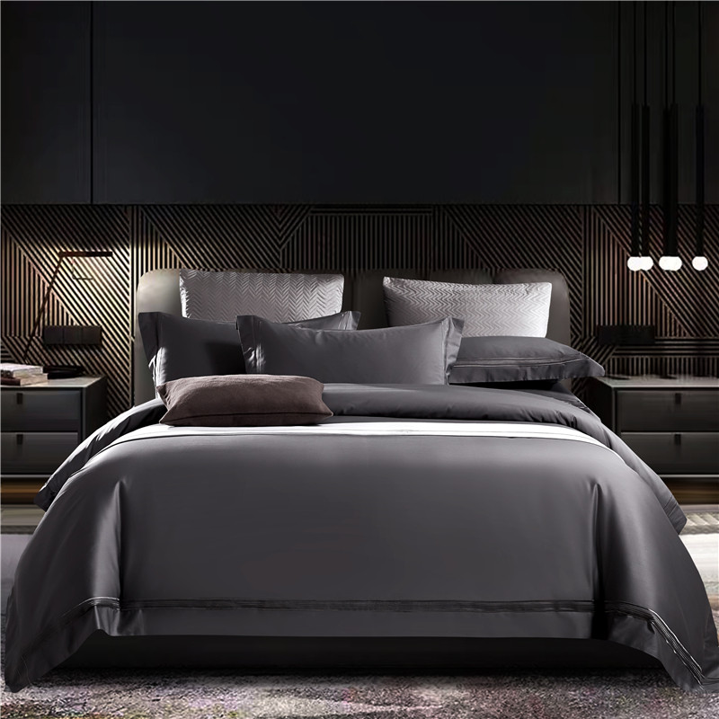 High end light lavish wind 140s Egyptian long suede cotton full cotton four pieces Naked Sleeping Gon Satin Pure Cotton Linen Bed Bedding