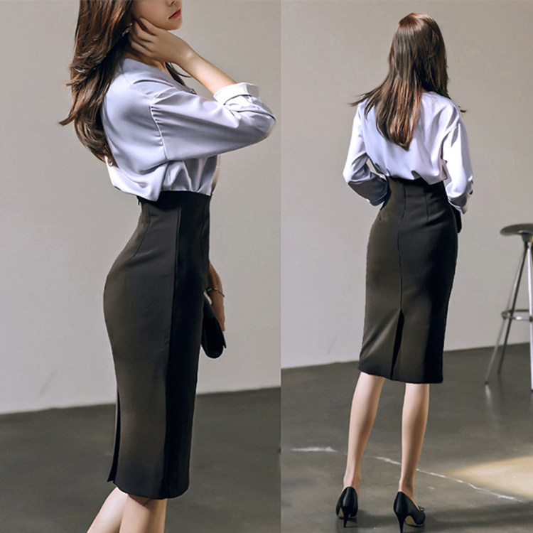 Hip-wrapped professional skirt women's 2021 early autumn new black high waist split one-step skirt long skirt stretch