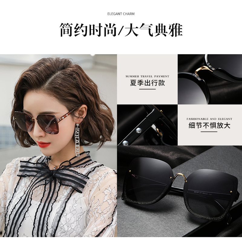 New women's large frame polarized sunglasses sunscreen round face thin fashion elegant anti-UV sunglasses female ins