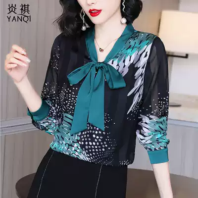 Fashion age reduction flower cover belly long sleeve chiffon shirt women 2021 Autumn New temperament design sense coat small shirt