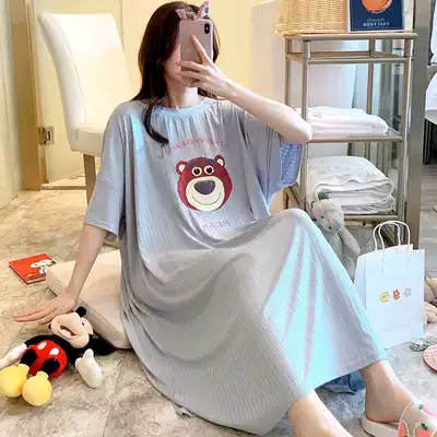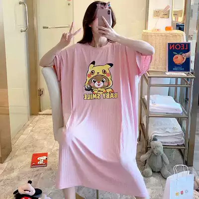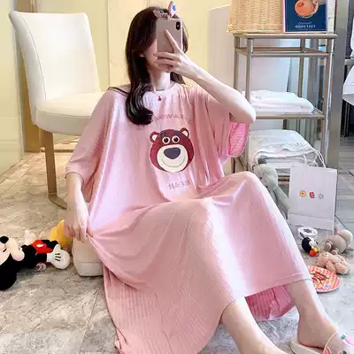 Fat Plus Size Nightdress Women 300 Jin Spring and Summer Thin New Cartoon Short Sleeve Pajamas Pregnant Women Fat mm Loose