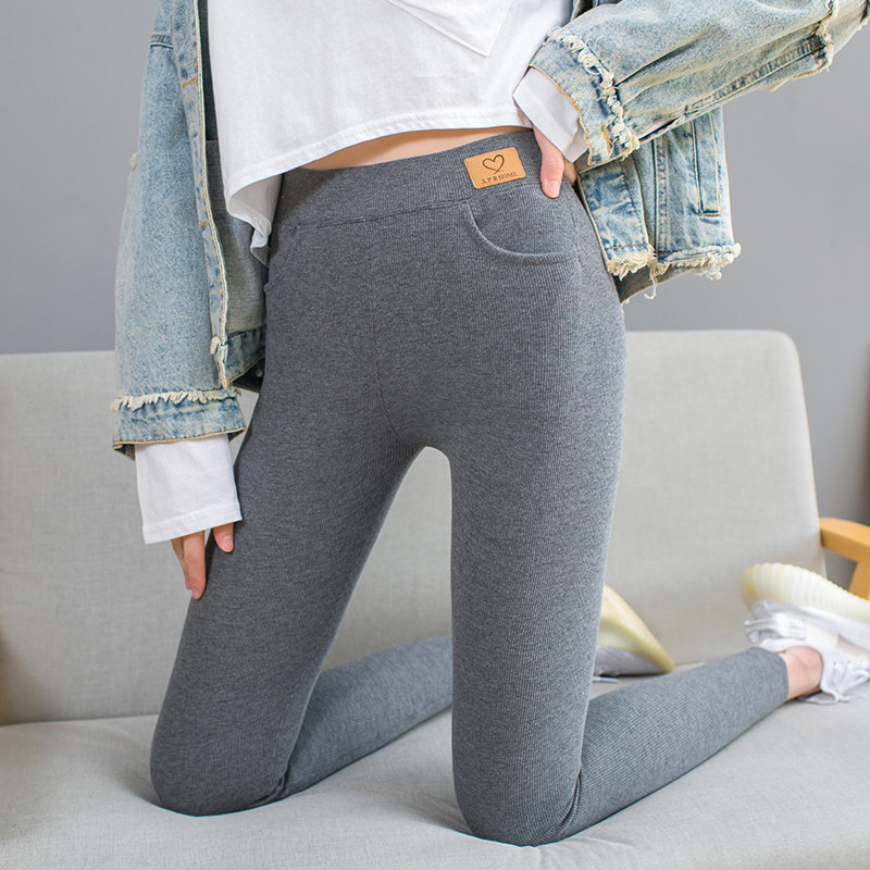 Inside lap pants female outside wearing spring and autumn slim fit slim black thread High waist Large size Sizes Summer 90% Pants New