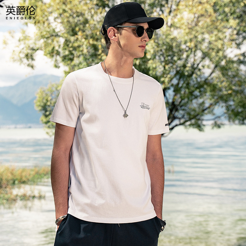 Baroness Lent 220g heavy pound pure cotton Summer T-shirt Male short sleeve Tide Card Embroidered Printed Half Sleeve Trend Summer Dress Blouse