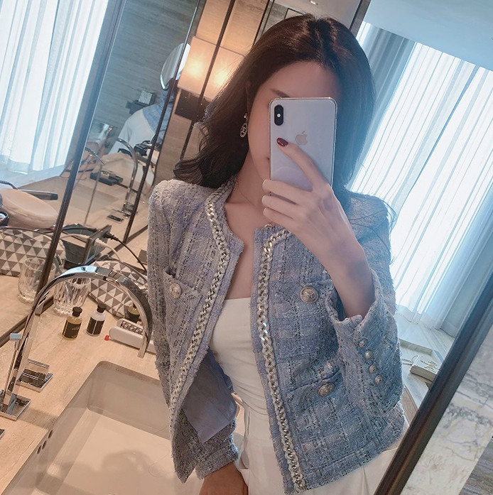 sandro asw little fragrant windy with short dresses, women's coat 2022 fall new name Yuanyuan little subblouse