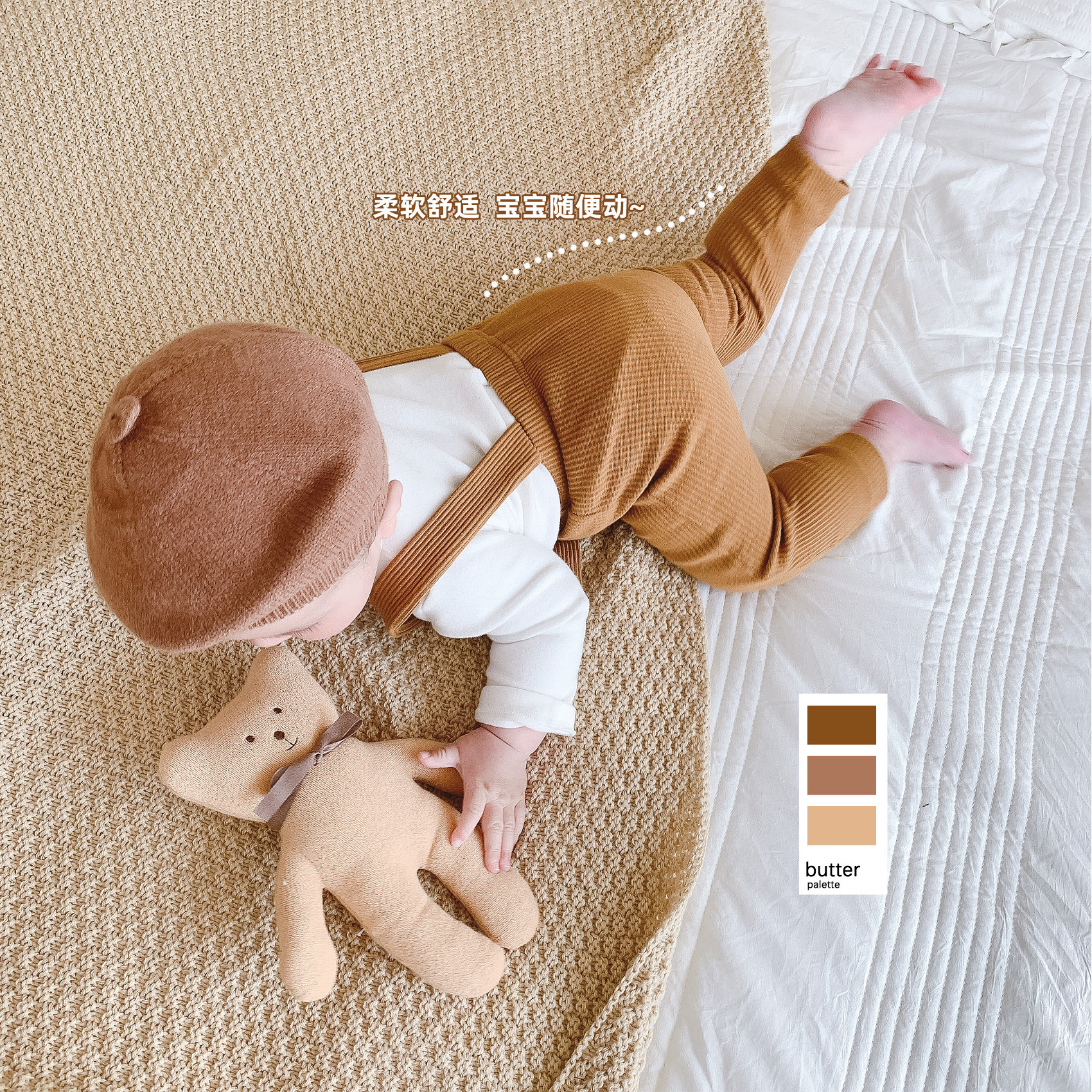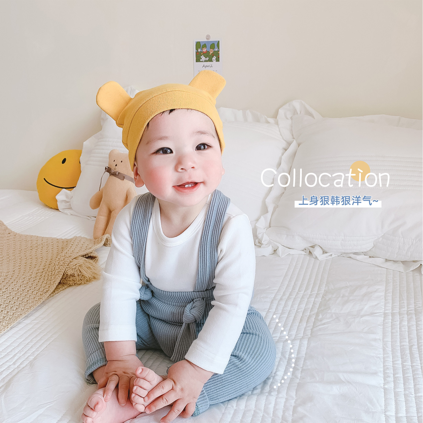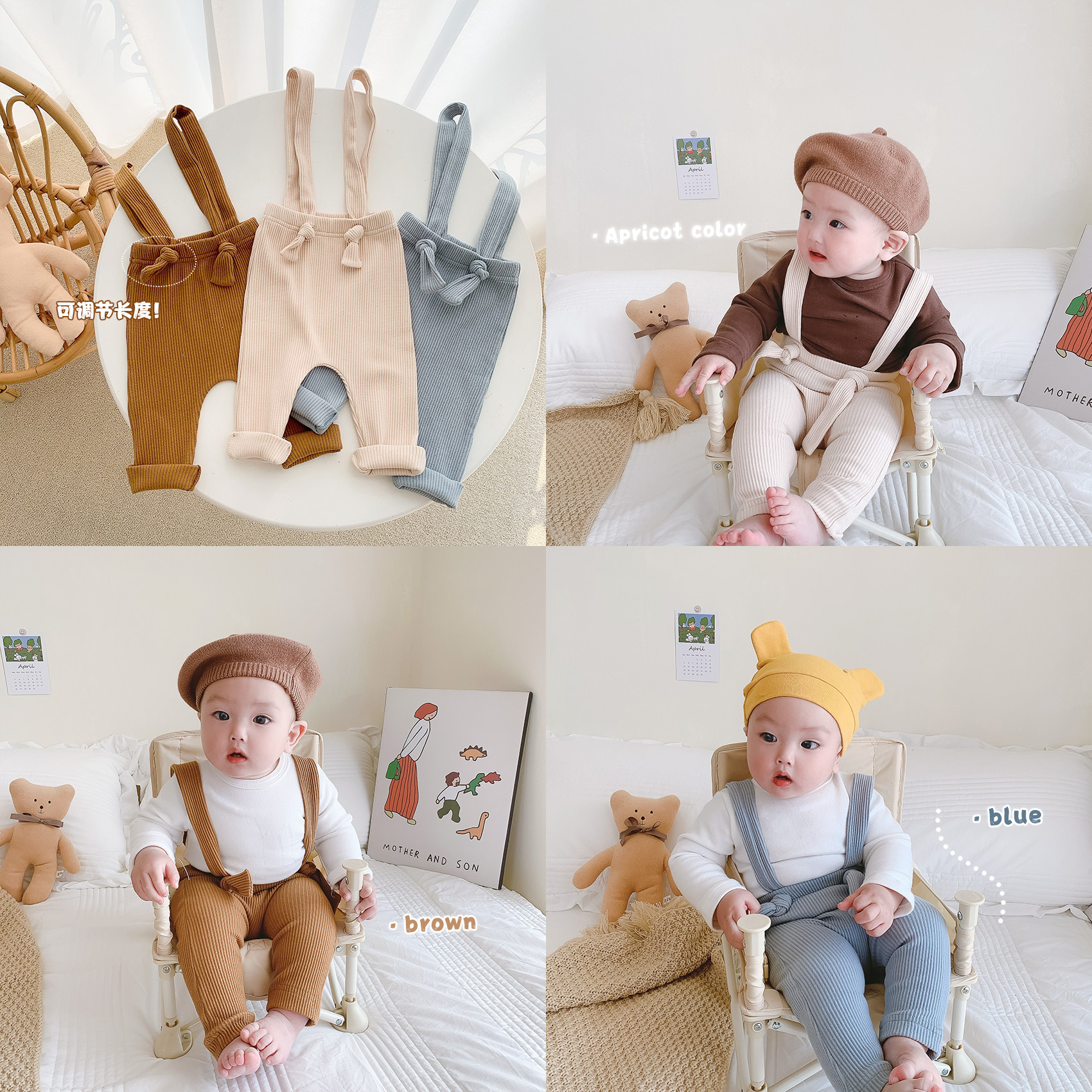 Han Fan baby pants men's spring and autumn cream-colored bib pants female baby foreign style autumn clothes infants casual pants tide
