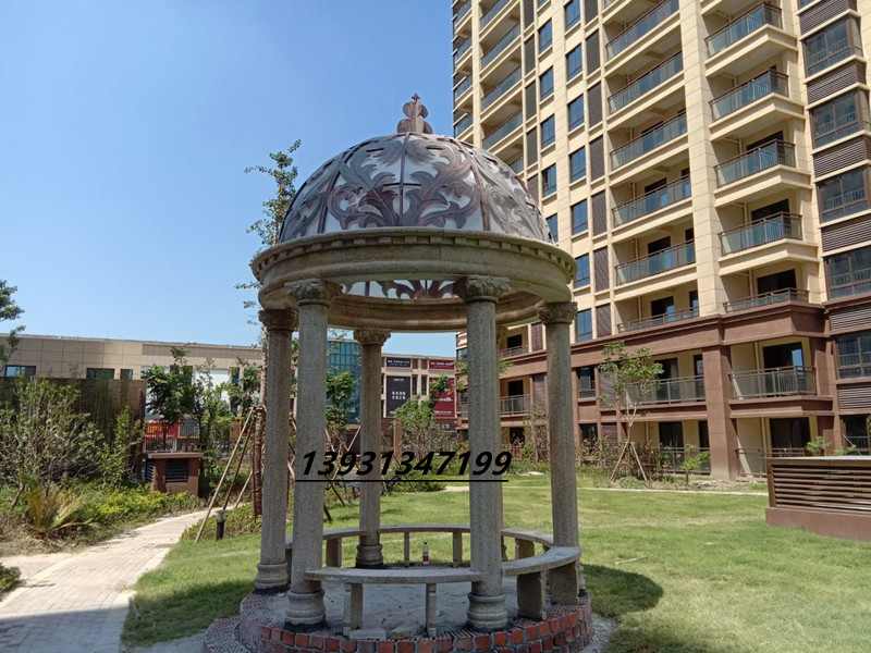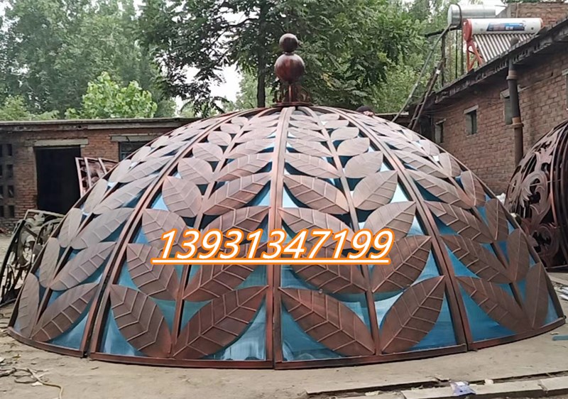 Customized stainless steel metal wrought iron hat pavilion taking the pavilion top round leaves outdoor marble garden sculpture