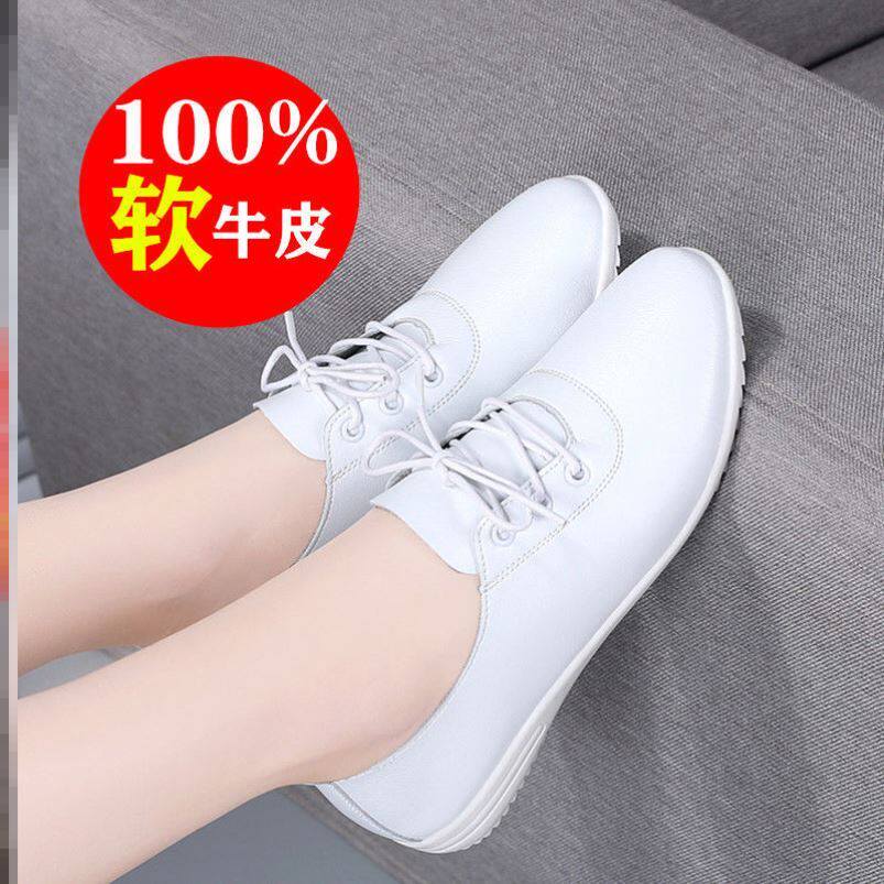 Genuine small leather shoes women's 2021 spring new flat-bottomed mother's shoes soft-soled all-match single shoes women's casual shoes dance shoes