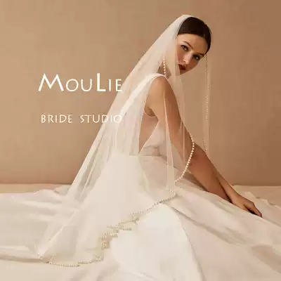 Veil bride main wedding dress simple atmospheric headdress Super fairy forest luxury heavy industry wedding medium and long version of veil pearl