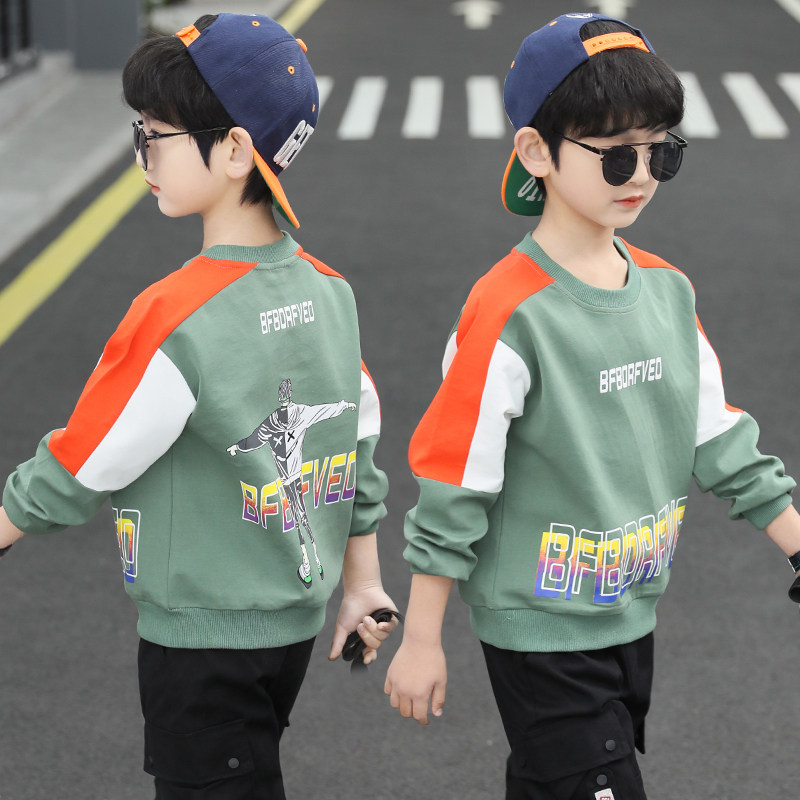 Boys' autumn T-shirts long-sleeved children's thin bottoming shirts 2022 new boys' spring and autumn middle-aged children's sweaters Western style