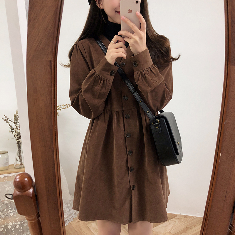 SNICYKER 2023 New female clothing French retro Heben wind corduro gas spring dress