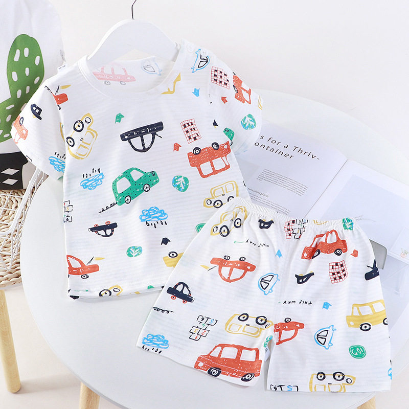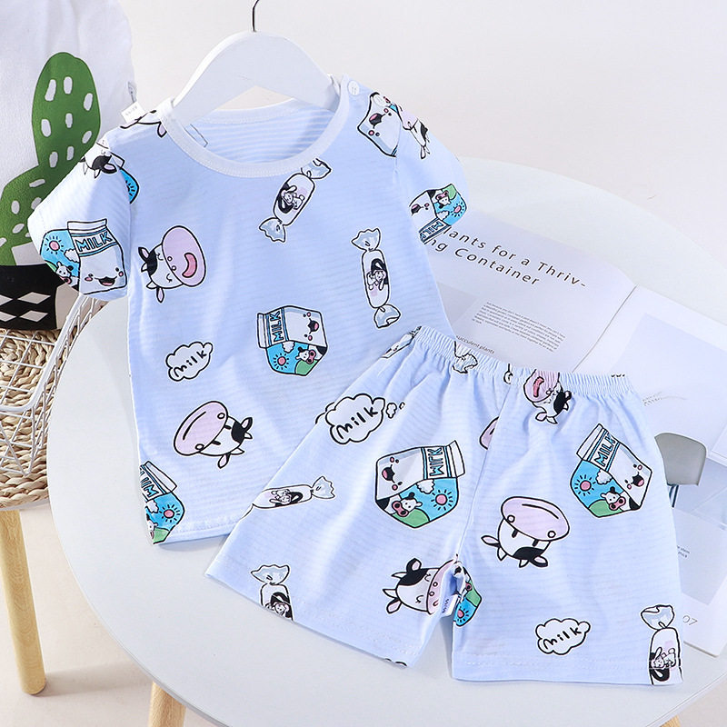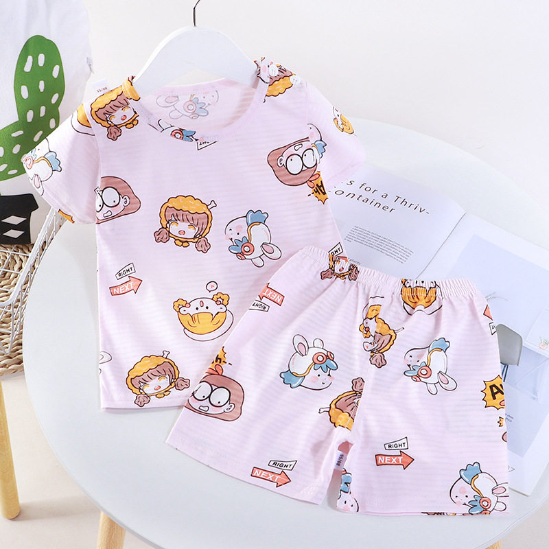 Children's summer new cotton short sleeves T-shirt set boys and girls air conditioning clothing breathable jacquard shorts home wear