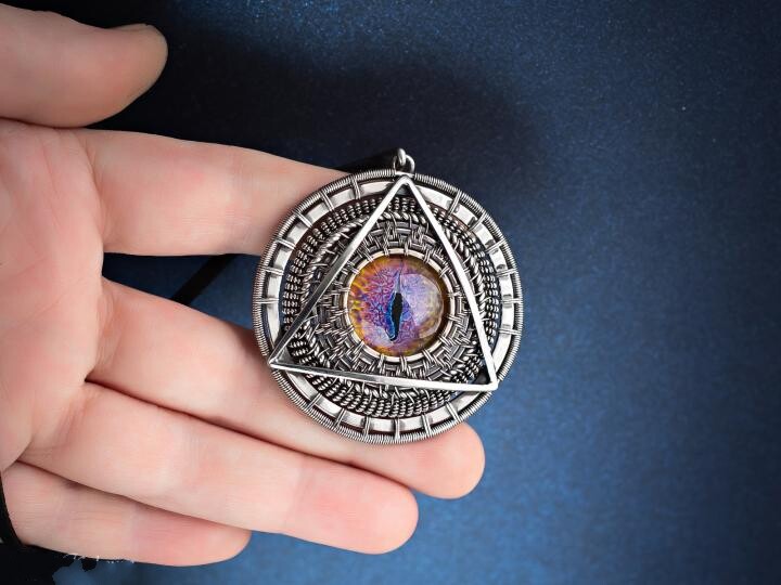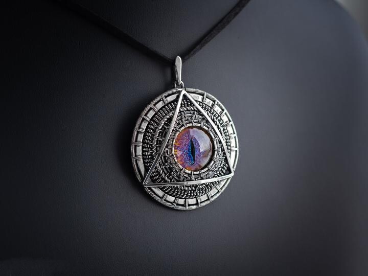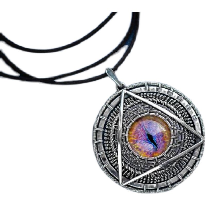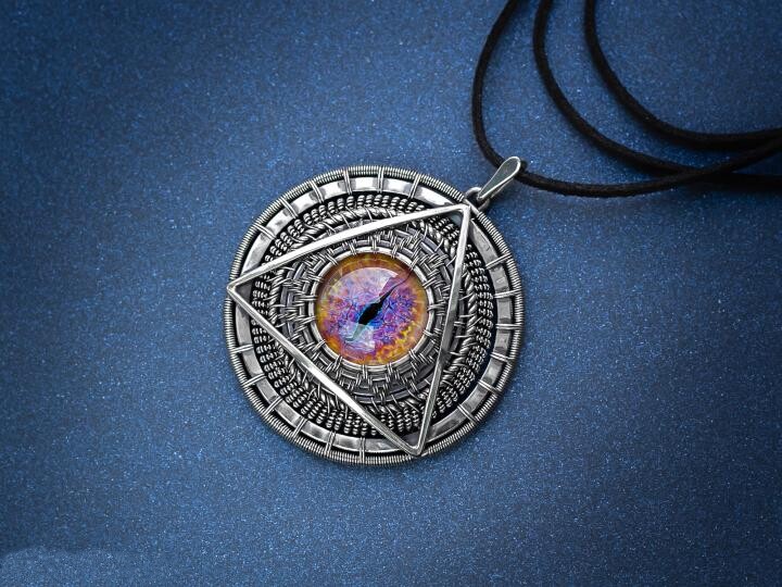 The Belarusian Dragon is handmade gothic silver wire braided around a cabochon longan pendant necklace