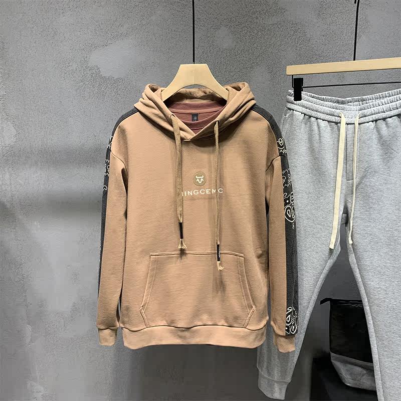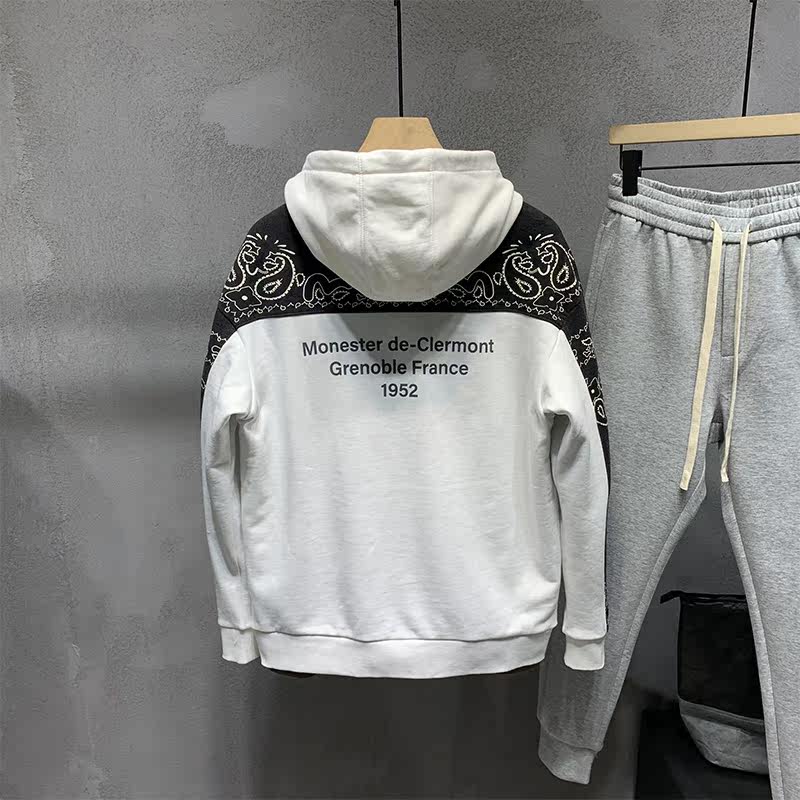 White printed thick cotton T male fall Lions Chains Chauded port Wind loose 100 lap Bull Embroidered Hooded Sweatshirt Collage