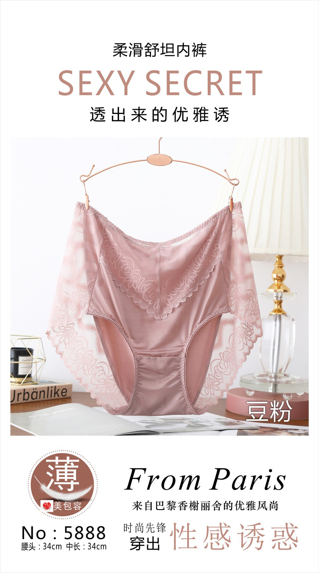 3 Dress Comfort Thin style Breathable Briefs Female Large Size Size Fat mm200 Catty High Waist Transparent Lace Triangle Pants Head