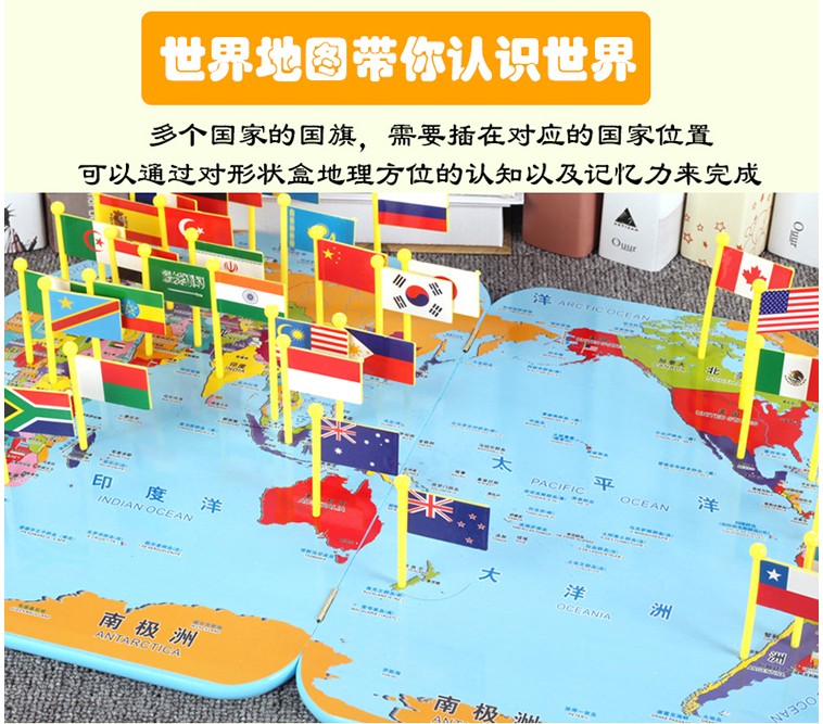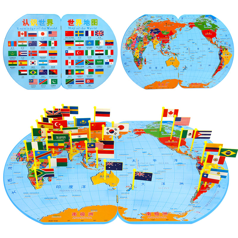 Children insert national flag Cognitive World Map Flag Card Kindergarten Early Education Big Class Middle Class Puzzle Area Corner Toys
